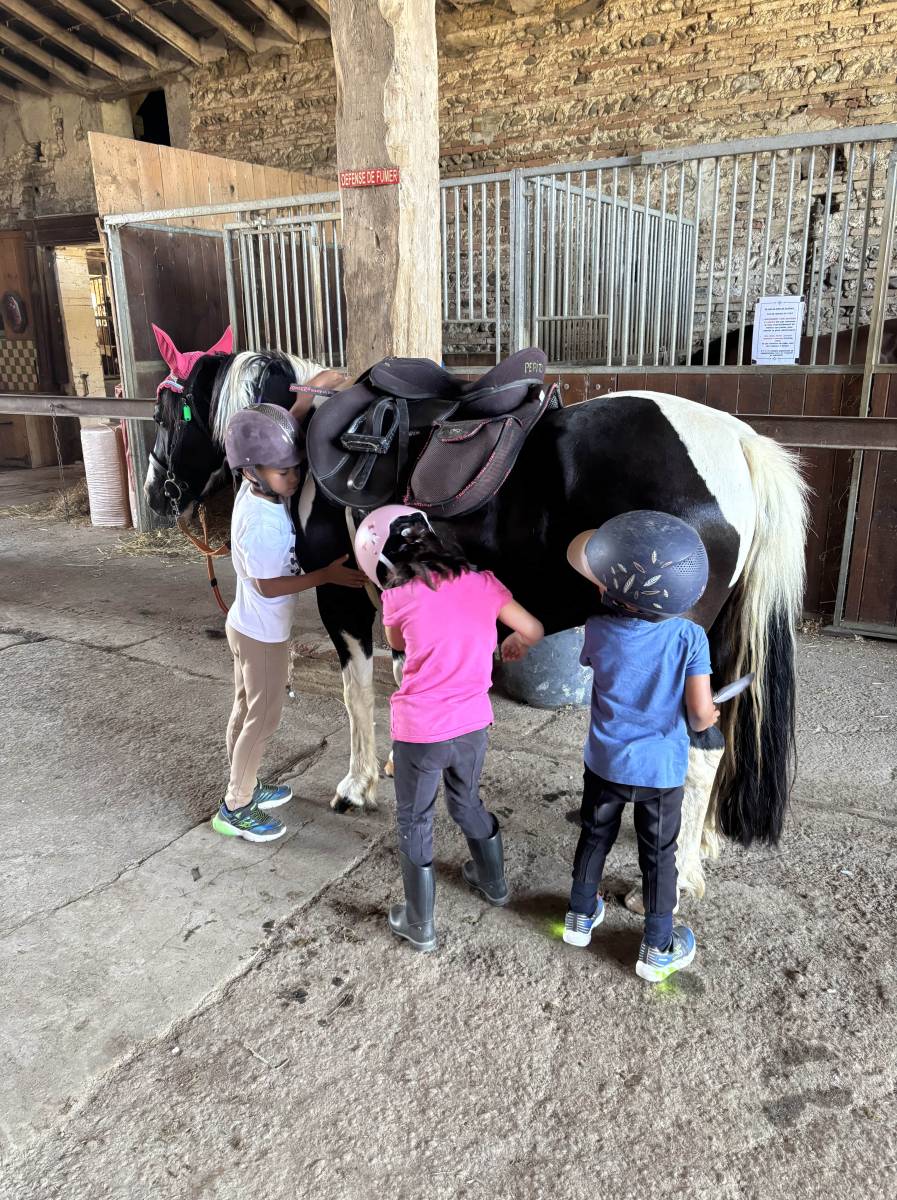 * On rentre aux écuries tous ensemble , on desselle, on nettoie et range nos affaires après un dernier coup de brosse !