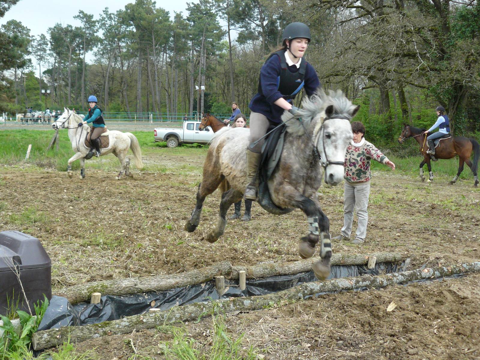 Objectif : Améliorer les compétences en saut d’obstacles tout en apprenant à évoluer sur un terrain extérieur, souvent imprévisible.