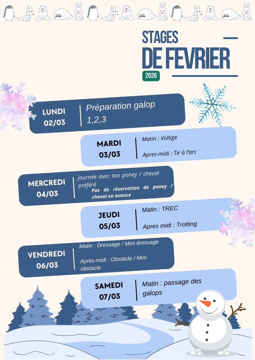 Les enfants débutants ou inscrits en animation poney peuvent participer uniquement aux stages en matinée.