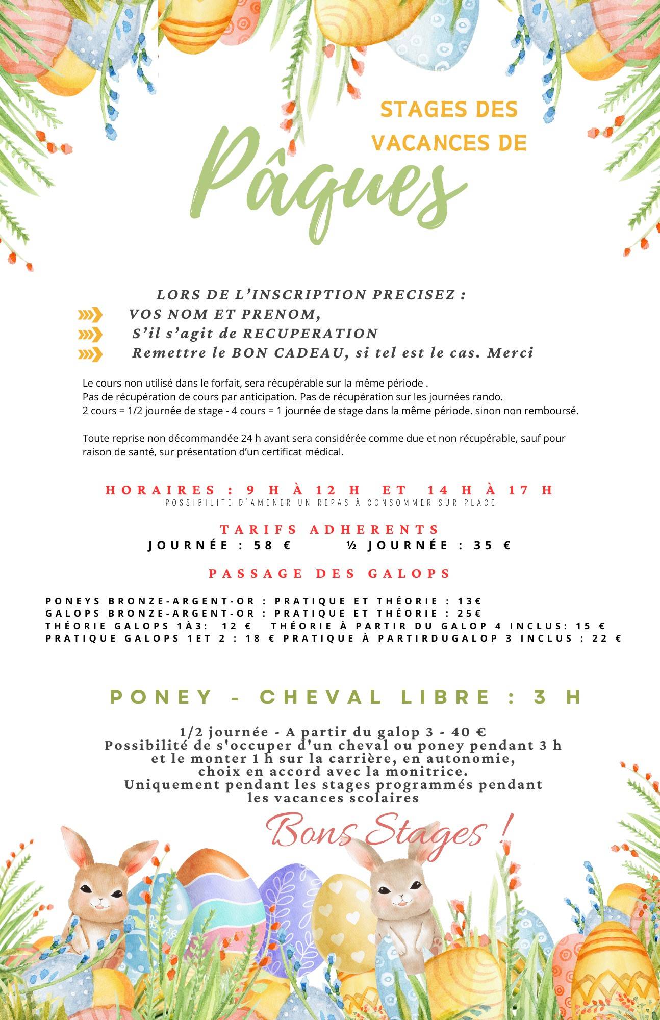 Stages des Vacances de Pâques à partir du Mardi 9 Avril 2024