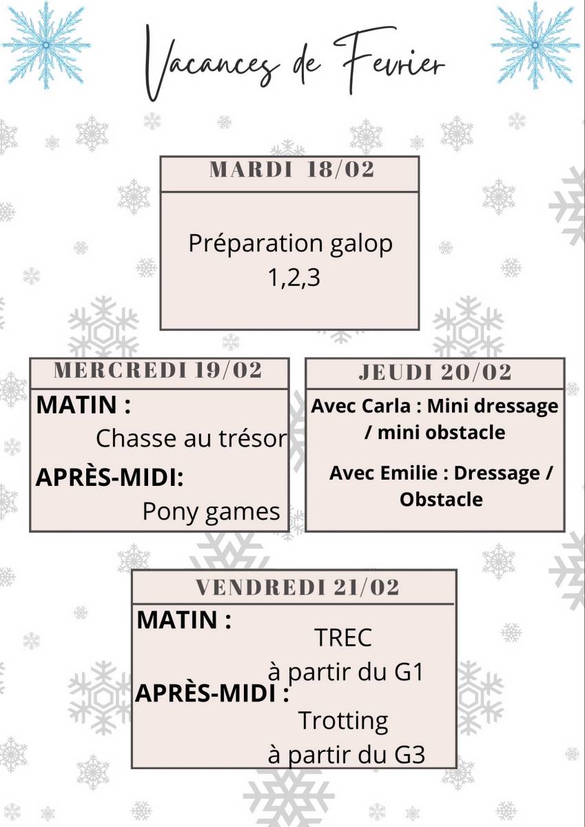 Stages des Vacances de Février à partir du Mardi 18 février !